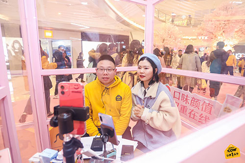 盒馬生鮮認養一頭牛春日桃園會新品發布現場人員直播拍攝